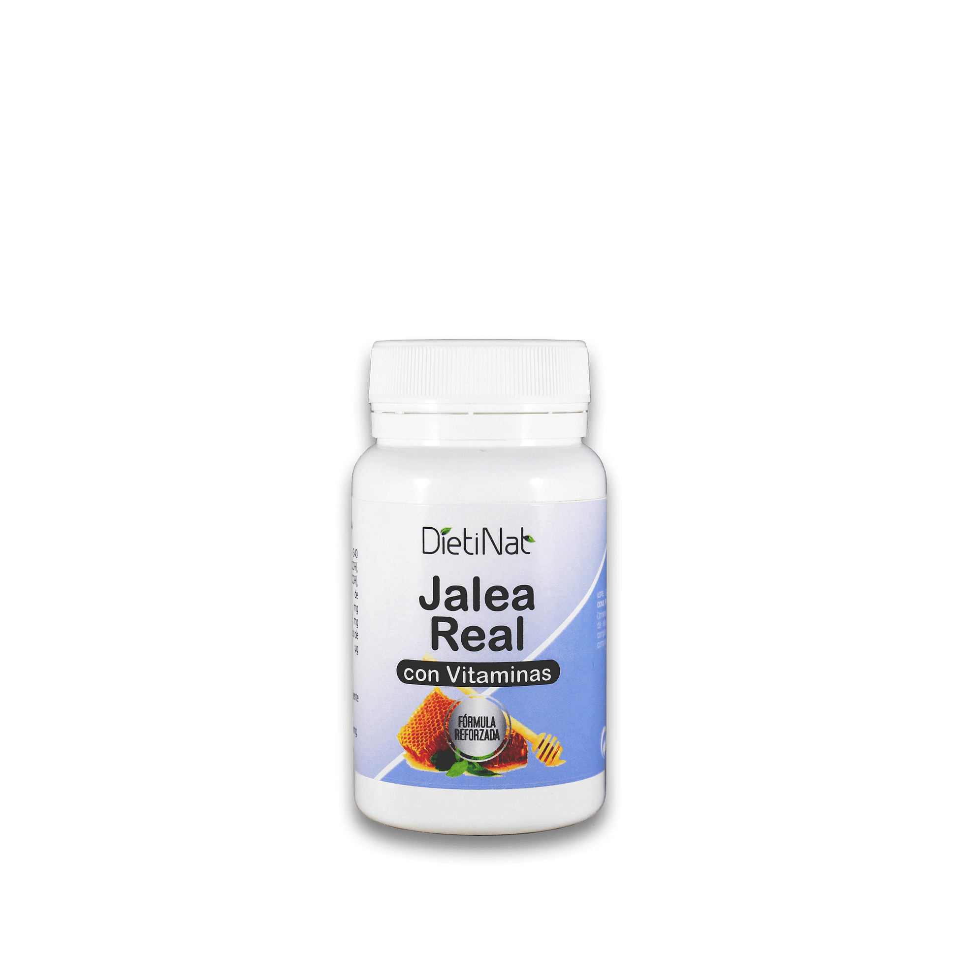 Geleia real liofilizada, cápsula vegetal (hidroxipropilmetilcelulose), vitamina C (ácido L-ascórbico), amido de arroz, vitamina B3 (nicotinamida), agente antiaglomerante (estearato de magnésio), vitamina B2 (riboflavina), vitamina B1 (tiamina HCl) e vitamina B9 (L-metilfolato).